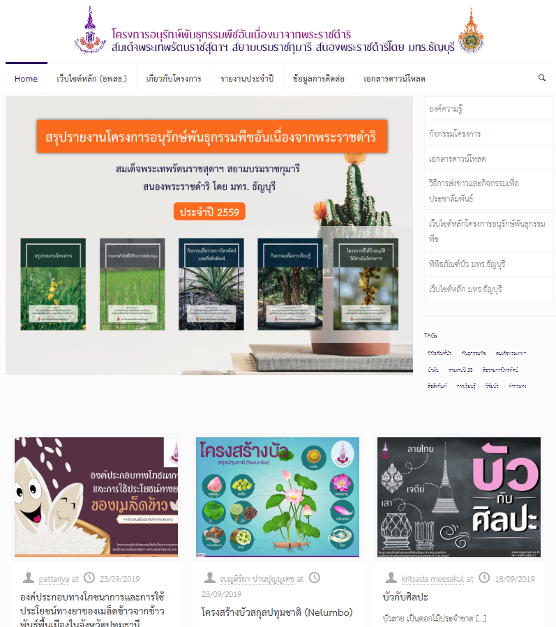 ด้วยมหาวิทยาลัยเทคโนโลยีราชมงคลธัญบุรี ได้ดำเนินการจัดทำแผนแม่บท อพ.สธ. ระยะเวลา 5 ปี โครงการอนุรักษ์พันธุกรรมพืชอันเนื่องมาจากพระราชดำริฯ และเพื่อให้การประชาสัมพันธ์ข้อมูลได้อย่างทั่วถึงครอบคลุมทั่วประเทศและนานาประเทศ จึงจัดให้มีการประชาสัมพันธ์ข้อมูลโครงการอนุรักพันธุกรรมพืชอันเนื่องมาจากพระราชดำริฯ ของมหาวิทยาลัยเทคโนโลยีราชมงคลธัญบุรีผ่านเว็บไซต์และสื่อออนไลน์ขึ้น เพื่อให้เป็นไปตามแผนกลยุทธ์การพัฒนามหาวิทยาลัยฯ ทั้งนี้เพื่อให้การดำเนินงานด้านการประชาสัมพันธ์โครงการ อพ.สธ.-มทร.ธัญบุรี มีประสิทธิภาพและเป็นประโยชน์ต่อประชาชนทั่วไปที่มีความสนใจในโครงการที่ มทร.ธัญบุรีทำเนินงานและได้มีการรวบรวมองค์ความรู้จากโครงการฯ ที่ดำเนินการแล้วเสร็จรวบรวมนำมาสรุปเนื้อหาเพื่อจัดทำสื่อให้อยู่ในรูปแบบอินโฟกราฟฟิกส์ (Infographic) ซึ่งเป็นสื่อที่เหมาะสำหรับการเรียนรู้ที่ได้รับความนิยมในปัจจุบัน สื่อดังกล่าวเน้นการใช้ภาพประกอบการนำเสนอข้อมูล และองค์ความรู้เพื่อให้เกิดความเข้าใจได้ง่ายเข้าใจได้ง่ายในระยะเวลาอันสั้นและกระตุ้นความสนใจให้กับผู้พบเห็น จำนวนไม่น้อยกว่า 4 เรื่องเพื่อเป็นการกระตุ้นให้ประชาชนทั่วไปมีความสนใจโครงการ สามารถค้นหาข้อมูลองค์ความรู้และเรียนรู้ได้จากสื่อออนไลน์ได้ 24 ชั่วโมง ภายใต้เว็บไซต์โครงการอนุรักษ์พันธุกรรมพืชอันเนื่องมาจากพระราชดำริสมเด็จพระเทพรัตนราชสุดาฯ สยามบรมราชกุมารี สนองพระราชดำริโดย มทร.ธัญบุรี (www.rspg.rmutt.ac.th) เพื่อประชาสัมพันธ์ข้อมูลข่าวสาร และรวบรวมองค์ความรู้ที่เกี่ยวกับการดำเนินโครงการด้าน โดยมหาวิทยาลัยเทคโนโลยีราชมงคลธัญบุรี โดยภายในเว็บไซต์โครงการ อพ.สธ. – มทร ธัญบุรี