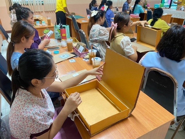 ผศ.จุฬาภรณ์ ศรีเมืองไหม และทีมวิทยากรจากคณะเทคโนโลยีคหกรรมศาสตร์ มหาวิทยาลัยเทคโนโลยีราชมงคลธัญบุรี เป็นผู้นำเสนอและถ่ายทอดความรู้ให้แก่ชุมชน กิจกรรมนี้ได้ถ่ายทอดความรู้และทักษะการแปรรูปเส้นใยจากก้านบัวหลวงให้กลายเป็นกระดาษคุณภาพสูง เพื่อนำไปผลิตเป็นโคมไฟและของตกแต่งต่าง ๆ ที่สะท้อนเอกลักษณ์ของชุมชน ผลลัพธ์จากโครงการช่วยสร้างอาชีพเสริมแก่คนในพื้นที่ และยกระดับผลิตภัณฑ์ท้องถิ่นให้มีมูลค่าในเชิงพาณิชย์ ผู้เข้าร่วมโครงการต่างแสดงความพึงพอใจสูงสุด พร้อมตั้งใจนำความรู้ไปต่อยอดในชีวิตประจำวันและสร้างประโยชน์ให้ชุมชนของตนต่อไป